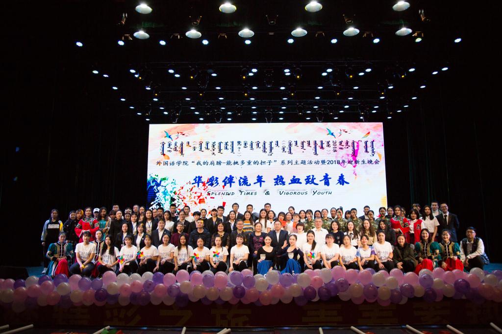 晚会由王巍和包东学两位老师进行中英双语主持,会议伊始,全场起立奏唱国歌。随后,晚会正式拉开了帷幕。晚会共分为《一抹迷彩绿 春风十里铸青春》、《同在蓝天下 守护团结献青春》、《寸金寸光阴 锦绣华年历青春》、《传承红色梦 沸腾热血致青春》四幕,节目包含民兵应急应格斗展示、民族风情展示、蒙语说唱、英文歌剧、英文话剧、师生大合唱等多种形式,节目精彩不断,现场气氛热烈,演员们坚毅勇敢的眼神、刚柔并济的舞动,令整场演出熠熠生辉、无限荣光。