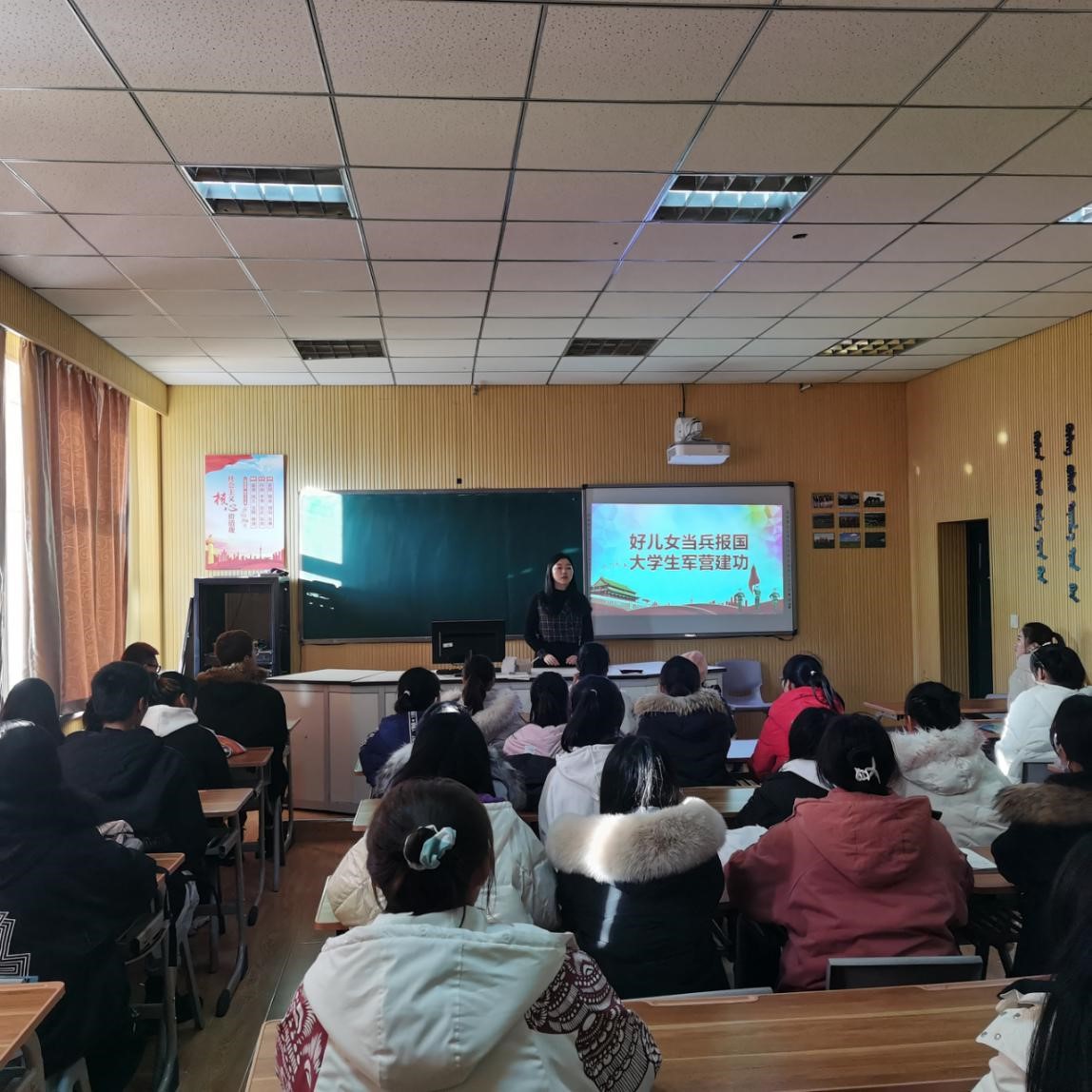 本次会议沈程程老师向大家介绍了征兵入伍的各方面内容及要求,包括征兵条件、流程及重要意义。会议尾声沈程程老师提到,希望同学们能够珍惜机会,增强国防观念和依法服兵役的意识,自觉地把服兵役作为报效祖国的实际行动。