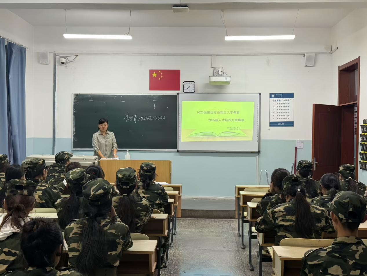 首先,俄语系李婧主任围绕2025版人才培养方案展开深度解读,从培养目标、毕业要求、课程设置、实践教学等模块进行讲解,明确新生四年学习的核心目标与课程逻辑。之后,针对新生普遍关注的“俄语发音难、语法复杂”等问题,李老师从自身教学经验出发,介绍了几种有效的学习策略:1.夯实基础,从语音阶段开始,借助“喜马拉雅APP”和“教材配套音频”反复跟读,确保发音标准;2.强化输入,每天阅读1篇俄语短文、观看15分钟俄语原声视频(如《玛莎和熊》《俄罗斯新闻》),积累词汇、培养语感;3.主动输出,积极参与课堂对话、第二课堂活动,专业比赛等,甚至可以尝试用俄语记录日常,在“说错—纠正—进步”中提升语言运用能力。接着,李老师详细介绍了公司与俄罗斯高校合作的多个国际交流项目,如“独联体项目”、“国家政府奖学金项目”、“自费读研”、“短期交流”、“国际夏令营”等,鼓励同学们认真学习,积极争取公派留学的机会。最后,结合近年毕业生就业数据与中俄合作趋势,李老师为新生梳理了俄语专业的多元就业赛道,打消新生对专业冷门的顾虑。