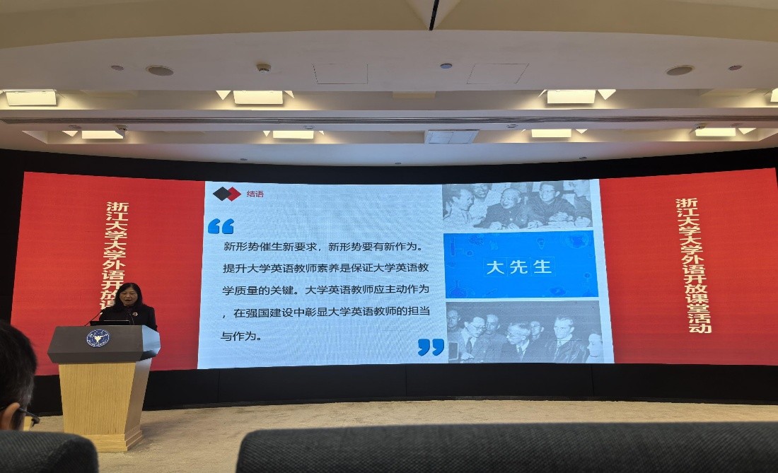 在说课交流与开放课堂环节,来自浙江大学的20位教师围绕《大学英语》《中国文化与国际传播》《新工科大学英语》等课程进行了教学展示。课程设计环环相扣,师生互动充分,技术融合自然,充分展现了“三进”工作与“四新”建设在课堂教学中的落地实施,为观摩教师提供了丰富的教学参考与借鉴。