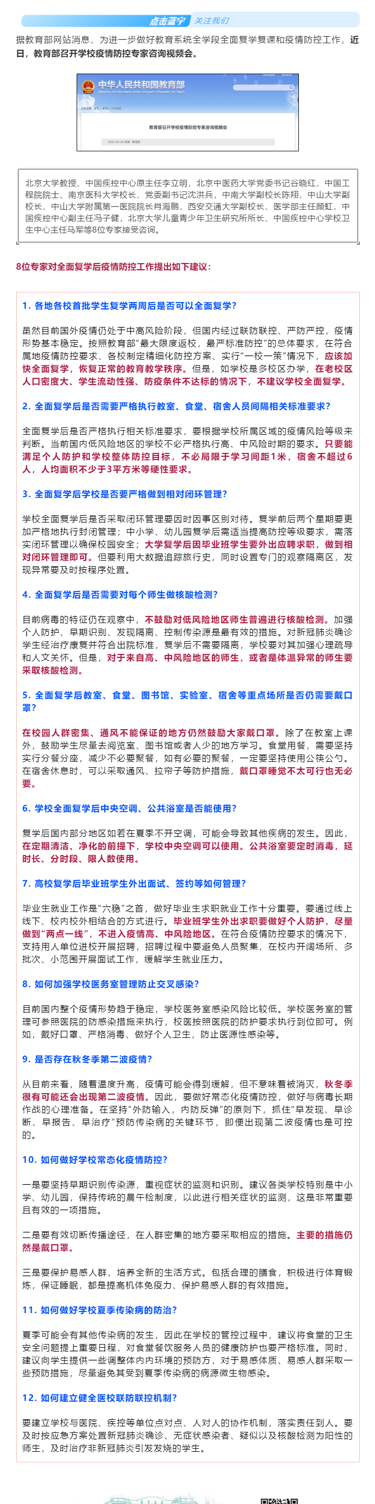 重磅!关于复学复课,教育部最新12条建议!